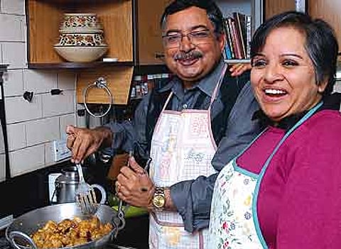 Within homes, Sundays are for spoon-tours. The Matthews in Kochi don't always grind up coconuts for a meen moilee; sometimes they prefer a Kolhapuri mutton that can be mopped up with Maharashtrian ambolis (thick spongy dosas). Delhi-based mediaman Vinod Dua, a pucca Punjabi, and wife Chinna whose family comes from Tamil Nadu declare: "We're united by Kashmiri biryani." The Pants in Pune proudly display their pantry stocked with plump Goa sausages and aromatic Bohri Muslim curry powder. Exploring the myriad flavours of regional cuisines is now easy with major markets stocking up on everything from Kashmiri kahwa to frozen Kerala parotas. Gujarati khandvi and dhoklas are flying off the counters as are ready-to-eat packets of pongal, a rice kichri from Tamil Nadu made by mtr Foods—a brand even silver-haired ajjis in Mysore endorse for having converted authenticity into easy heat-and-eat sachets. Recently, Pakistan's famous Shaan masala brand was also selling Sindhi biryani masala and Hyderabadi pickle at the India International Trade Fair in Delhi. Internationally, celeb chefs like Ainsley Harriot are showing Londoners how to cook up a Parsi lamb dhansak and Maharashtrian shrikhand.