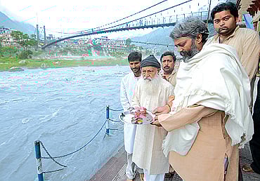 So, for much of this week, saffron-clad sages attached to the VHP have been travelling out of their sprawling ashrams, picturesquely situated on the banks of the Ganga, rushing between Agrawal in Uttarkashi and Uttarakhand chief minister B.C. Khanduri in Dehradun, confabulating with BJP leaders in Delhi, and making pledges at assorted baithaks and sammelans to the cause of the Ganga. As a result, Khanduri, a former general, who has for several months responded to anti-project representations with vigorous "pro-electricity" arguments (and even said in a meeting recently that Ganga-seeking pilgrims could go to Kashi rather than come to his state, as far he was concerned) has modified his stand and said he is willing to scrap two state government projects—the Pala Maneri project, which he has just inaugurated, and the Bhaironghati project, which is still only a proposal—if the Centre compensates him for the loss of electricity. As for Loharinag Pala, he told the agitators to go to Delhi to seek redressal. Suddenly in campaign mode, the VHP has also begun baying for the Centre's blood, claiming that only a BJP government at the Centre can deliver on an unfettered Bhagirathi. Clearly, the saffronites are not just defending their flanks but hijacking the issue with an eye on the general election. (According to one Sangh strategist's calculation, 48 Lok Sabha seats are in the close vicinity of the Ganga.) Sitting on the velvety lawns of his ashram in Haridwar, VHP leader Swami Chinmayananda says, "Why does Agrawal want to spare the Tehri dam, which is a central project? If we are talking about an aviral Ganga, why in this adha adhura (half-hearted) way?" Responds Rajendra Singh: "We are not out to fix the whole world. They want to give a campaign to save a small, precious part of our heritage a political thrust—turn it into another Babri Masjid or Ram Setu." "Don't play football with the Ganga, let the Ganga remain the Ganga," adds estranged RSS ideologue K. Govindacharya, who has also joined the battle for the Bhagirathi. Amid the clamour, the indomitable Agrawal fasts. The fight, he says, is far from over.