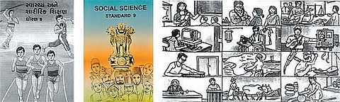 The Nirantar study, titled ‘Textbook Regimes: A feminist critique of nation and identity’, also threw up subtle biases such as those pointed out by Verma. Among the many flaws highlighted was the ingrained bias against women that came through repeatedly in a “highly gendered construction of citizenship and a privileging of a male public sphere” in our textbooks. This includes the example of the covers of two Gujarat textbooks where women have been left out. The first, a cover for a physical education book, shows only boys playing, while the second, a cover for a social science textbook, depicts only men as citizens of the country. Similarly, a panel from a Class 3 textbook in West Bengal presents teaching as the only suitable profession for women and displays men as judges, doctors, etc.