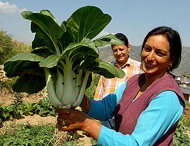 At about the time when Malik was experimenting with exotic vegetables in Sirmour district, around a dozen farmers in the interiors of Mandi district were doing the same. An NRI who hails from Karsog valley distributed seeds of asparagus, parsley and iceberg lettuce to local farmers, who were pleased with the results. They got a good price for their produce in Delhi's markets, and soon growing 'videshi' vegetables became the in thing in this remote valley. Today, almost 500 farmers spread across dozens of villages grow gourmet vegetables like asparagus, pakchoi, joichoi, snowpeas, leeks, cherry tomatoes, fennel, celery, coloured bell peppers, zucchini, broccoli, and a variety of lettuces such as lollorosa, radicchio and romaine. These are lapped up by five-star hotels, upmarket restaurants and foodstores in Delhi and Mumbai.