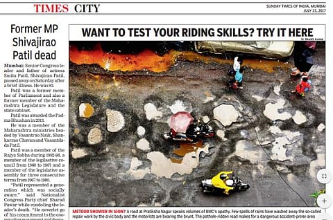 Earlier, a 21-year-old man was killed when his two-wheeler landed in a pothole near the state-run JJ Hospital in Mumbai in September last year.