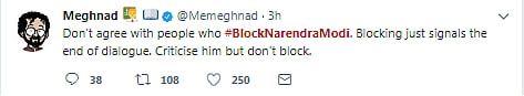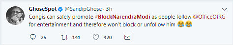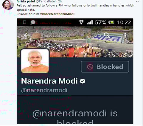 Many Twitter users have decided to block the PM as angered by reports that some of the users who have been cheering Lankesh's death are followed by Modi (personal account). The hashtag: #BlockNarendraModi is now treading on the social networking site.