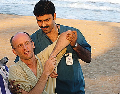 The crews tracked the pilgrims' progress, finding their way into an operating theatre where a surgeon obligingly delivered a tribute to the British system that trained him. To complete the picture, they also took gruesome shots of operations being performed at public hospitals and tell-tale ones of a row of empty beds in a poor ward at the Apollo Hospital. But the main message came through loud and clear: white people getting knees replaced, hips resurfaced, and dental work done at bargain-basement prices by experienced doctors who knew their job. British tabloids went to town on teenager Elliot Knott who successfully underwent spine surgery here last August after being told to wait a year for an operation by the National Health Service.