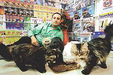 About ten years ago, cats we saw were mostly strays, who wandered off the roads and hung around kind homes to be fed about once a day. But if people were going to get a pet, they got a dog. Not anymore. An increasing number of people over the last couple of years have opted for cats as pets, because they demand so little of their owner—you don't have to walk a cat, bathe it, or keep it company and yet you have the pleasure of keeping a pet at home. And they're especially suitable pets if you're living in tiny apartments, sans full-time domestic help, as many young urban professionals are today. Observes Delhi vet Dr Samar Mahendran, "A few years ago, I hardly saw any pet cats in Delhi but now they form 25 per cent of my practice." Dr Sanjeev Rajadhyaksha, a Mumbai vet, thinks the growing popularity of cats is "a sign of a developing economy. The more young professionals there are in a country, the more people who work hard, and still want a pet animal. Dogs need too much attention, so cats are the best bet."