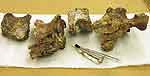 Some of the actual fossilised bones of a new 65-million-year-old dinosaur species identified from bones collected in India