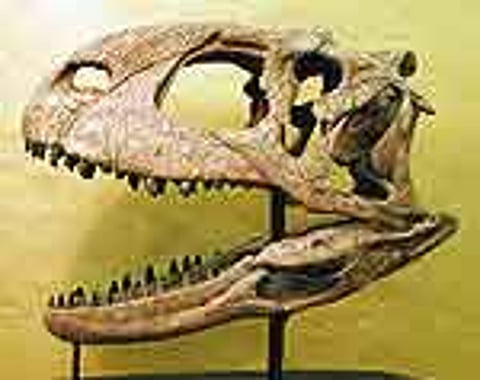Cast of the skull of the new dinosaur from India, identified from bones collected there