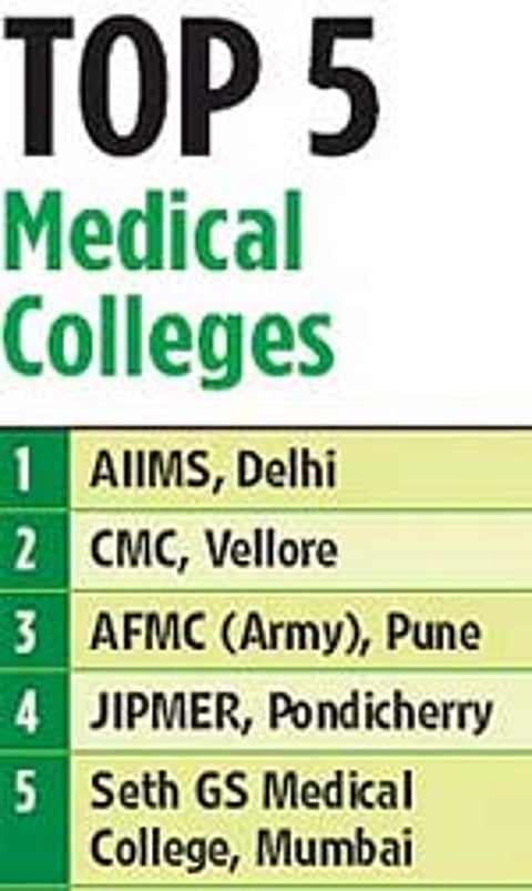 But the ranking of engineering and medical colleges is based on objective factors. So, the ranking of some institutes may not be in sync with their existing brand image. This survey gives the highest weightage, 60 per cent, to objective parameters, and only 40 per cent for the perceptual ones.