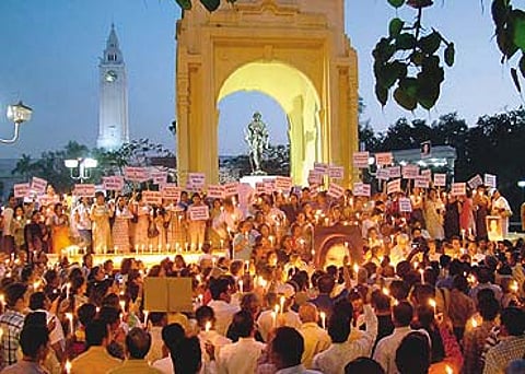 In their drive for publicity, these new forms of protests are becoming more inventive. Face painting and artfully designed placards make for striking images on the TV screen and photofeatures in the media. If celebrities can be roped in, it almost always ensures a front-page photograph in leading daily newspapers, and TV coverage by news-hungry 24x7 channels. Last week, for example, the presence of actors Anupam Kher and Roshan Seth in the protests in Delhi about the Priyadarshini Mattoo case, against the backdrop of the telegenic Jantar Mantar, gave the cause enough (much overdue) airtime. In May, an SMS and e-mail campaign resulted in a 'Black Friday' being observed in Hyderabad. Techies backed engineers and doctors protesting reservations in the capital, and 40 per cent of the workers in Oracle, a leading software multinational, wore black shirts. Other employees across the software industry also took part. Token though it was, this protest received coverage in national dailies.
