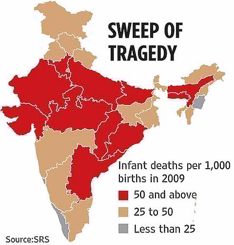 “Fifty per cent of deaths under the age of five are neo-natal deaths, and some 4 lakh children die within 24 hours of being born,” says Shireen Miller, director of advocacy for Save the Children. “Critical care for newborns and mothers during this period is not being done.” And Dr Aparajita Gogoi, national director for the White Ribbon Alliance for Safe Motherhood, an American NGO, says what is most disturbing is that a large number of these deaths can be prevented. “If communities and families are provided information on breast-feeding and not bathing the newborn for the first 5-6 days, and if the government implements some very lowcost interventions, there will definitely be a huge drop in the infant mortality rate,” she says.