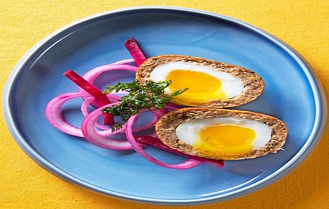 Begin your journey with the Beadon Fish Roll, a slightly smoked fillet of Kolkata Bhekti stuffed with curried shrimps, breaded and fried and served with Kasundi mustard spiked ‘salaad’. Or allow yourself to be carried away by the flavours of the quintessential College Street hing-er kochuri, deep fried thin urad daal stuffed kochuris served with a spicy potato curry and sweet and sour red pumpkin. Dig into the meaty Girish Park-er Shoitan Deem, an ode to the roadside tele-bhaja shops dotting the streets, this is a deep friend six-minute egg, is encased in shammi kebab mince- when Kolkata meets the Scotch egg and Dimer Devil and moves beyond.