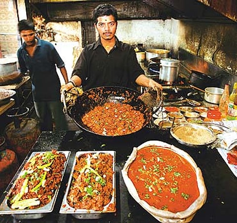 Does the city ever tire of its passion for spice? It does, as we discovered one noon when our tongue and stomach both rebelled against Guntur's fiery fare. Judging by the long queue outside Guntur's oldest eatery, Anand Bhavan, we weren't the only ones wanting a break. There, on plain wooden benches like in a village primary school, Guntur washed its palate off with a very sattvic bhojan served on banana leaves, of mild rasam-sambar and rice. The Bhavan's young proprietor, an mba whose Tam-Brahm grandfather opened the eatery over a hundred years ago, gives us the secret of its success: "We don't use garlic or onions, and hardly any chillies."
