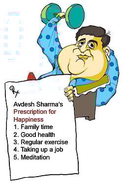 I ask Dr Sharma the only question worth asking: Is he happy? He laughs, unusual for a practising counsellor who spends his working day listening to patients with serious mental problems. "I am fairly content and happy. Of course, I do have my ups and downs but I am more aware of them now and work on it." What helps him get through a bad day, he says, is being with his children, going for a walk, and reading a good book, mostly self-help. And meditation.