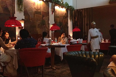 When Mocambo opened in the 1950s, it was meant to be a stylish place to eat continental food—and it remains so, cocking a snook at pretentious decor and cliched kitsch. Thus the short, russet sofas and barrel chairs, or the soft pool of light the scarlet lampshades cast on each table. Mocambo is a bastion of old Calcutta food—an inspiring mix of continental, Anglo-Indian, Mughlai and Bengali. Their signature dishes—done in the old European butter-cream-sauce-cheese style, new-fangled fusion be damned, announce this: the famous chicken a la Kiev, Fish a la Diana (“beckty stuffed with prawn, cooked in cream sauce”), Chicken Tetrazzini, Devilled Crab (“crab meat in cheese and mustard sauce”), the generous sizzlers, chelo kebabs, prawn cocktail.... Like some great restaurants, Mocambo offers a sensual immersion. This it does with the intoxicating smell of fried butter, cooked gravy, air-conditioning and a whiff of cold beer. It goes particularly well with watching the slant of the sun on Free School Street, sitting by one of the bay windows.