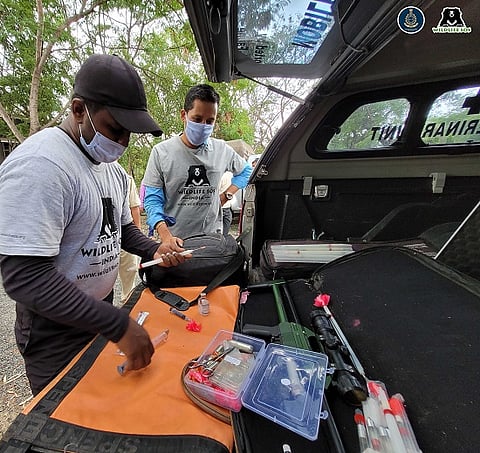 The Wildlife SOS rescue team preparing tranquilising equipment