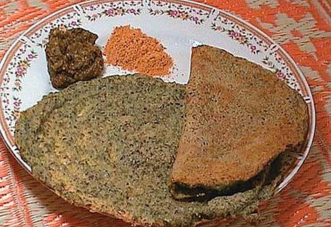 Pesarattu is the Andhra version of a dosa, but made of green gram instead of rice. A popular variant is the ‘MLA pesarattu’, stuffed with upma. It apparently got its name from the state’s MLAs, who invented this greedy snack in the MLA canteen to sneak into the assembly and eat during long, boring sessions.