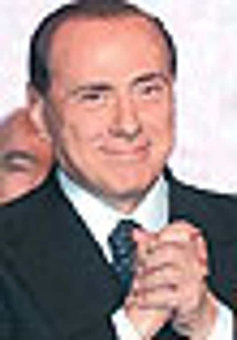—Silvio Berlusconi, the 72-year-old scandalous Italian Prime Minister, playing along at a youth rally in Rome.