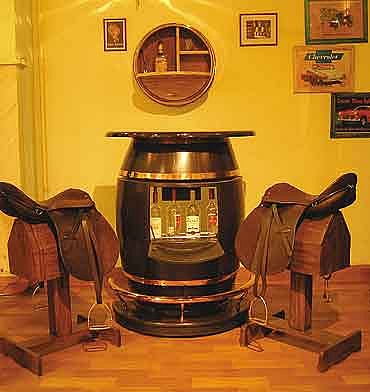 Even smaller cities have surrendered to the bar bug. One reason for that being larger spaces and cheaper prices. Anuradha Bore, a Bhopal-based housewife, had an interesting design in mind for a bar, but it cost Rs 40,000 in Mumbai. In Bhopal, she got it made for just Rs 17,000. Preeti Rajput, another city housewife, says her lavish wooden bar is put to frequent use. "Bhopal is a small city, and my women friends prefer not to drink outside. But if it's a party at home, then they just let their hair down," she says.