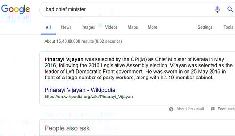 In a major embarrassment for Kerala Chief Minister Pinarayi Vijayan, the CPI(M) leader's name is shown by Google on searching for 'Bad Chief Minister of India'. The phrase was searched as many as 20,000 times in a day on Monday, revealed Google Trends.