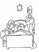 The boys splashed about in the water. The baby cried in the cradle. Its mother begged in the street. Her breasts were strained with milk.