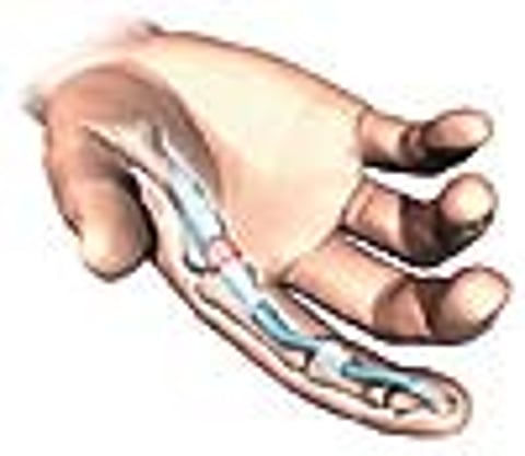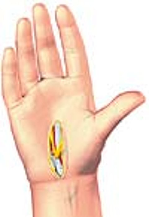 Intersection Syndrome Repetitive motions of the wrist and thumb cause an abrasion between the two sets of tendons that control them. The intersection of these tendons, in the forearm just above the wrist, develops a painful inflammation.