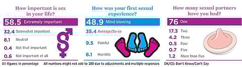 Sex is something which has natural association with youth—raging hormones, infinite possibilities and many, many naughty discoveries. Or so we hope and pray. Given that such a large proportion of Indians are young, what’s the point if they aren’t reaping true dividends—sex, and lots of it—in keeping with their demographic? Which is why we at Outlook decided to focus on this demanding segment (ages 18-35) in the Outlook-Skore Sex Survey 2012. Our findings show that, although late bloomers (most of the youth surveyed had their first sexual experience in the early 20s), urban youth are experimenting and more open about attitudes to sex. There’s a clear relaxation here in views on virginity too. There’s also greater acceptability about casual sex in the urban arena (almost 65% respondents acknowledged having what is now referred to as ‘buddy sex’ before marriage). This growing ease and comfort with sex is evident in two startling disclosures: one, 30% of urban youth don’t think there’s anything wrong with homosexuality (29% of urban males admit to having had a homosexual experience at least once). And, secondly, urban youth are talking about the elephant in the room: incest. A stunning 73% of our sample agree that incest is a big issue in India. All this may not add up to a sexual revolution yet but one thing is for sure, our youth are definitely speaking a new sparkling, sexual language.