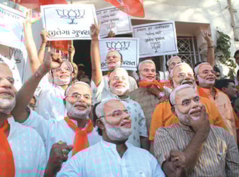 If Modi doesn't appear to be the least bit lonely, it is because he seems quite enamoured of himself. The more the number of men wearing Modi masks, the broader his grin at election rallies. He has taken the cult of personality to levels unimaginable in a party like the BJP. Even his national ambitions are of promoting Modi as being "bigger and tougher" than the BJP. His overriding nature does not allow him to treat colleagues as equals. A narcissist to the core, he inhabits his own universe even as he plans to conquer the world.
