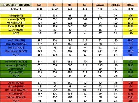 The Left Unity, this year, reinstated its strength by winning 41% of the casted votes for the post president. Certainly, the newly formed BAPSA was able to dig into the red votes by getting a 33% vote share, while the ABVP almost retained its vote-bank by getting 23% votes.