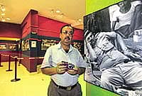 Parpiani, Mid-Day’s photo-editor, has avoided the cynicism and darkness that characterise cop photos. That makes him believe it’s not unusual for policemen to carry their own children (he shot an officer who came to see the exhibition, carrying his sleeping child in his arms). Instead, many of the photos catch policemen off-guard while they aren’t playing at superheroes. A couple of cops giggle at the camera as it catches them in an empty urinal in one photograph. In another, policemen wield their lathis on a man framed in an improbable pose of refuge.