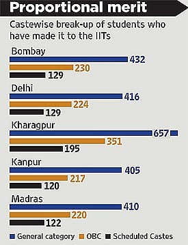 For all those naysayers who felt that reservations would lower standards at the prestigious Indian Institutes of Technology (IITs), there is news. A little over 1,000 students from the Other Backward Castes (OBCs) have made it to the hallowed portals of the IITs without reservation. And the number of students belonging to the Scheduled Castes and OBCs almost equals the volume of general category students who are in.