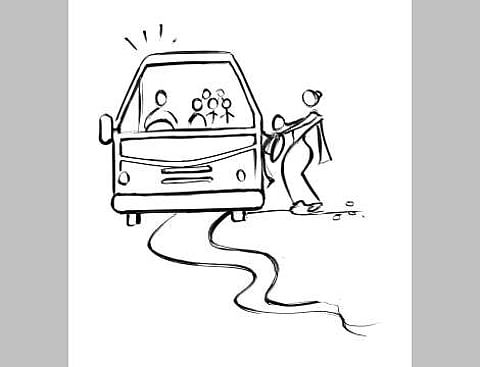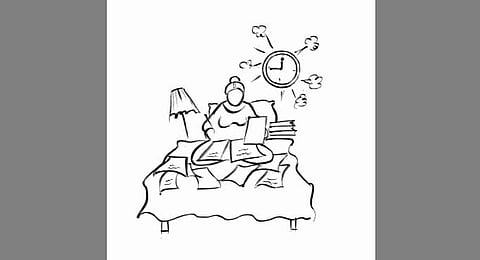 -- There is nothing pleasurable than waking up without being woken up. But she hasn’t known that pleasure for long. Her day begins at 5 a.m. She needs to ready her son for school. She bathes, cooks while grappling with the sari, her uniform, while rubbernecking at the wall clock multiple times. And then bolts for school at 7 a.m after planting a quick goodbye kiss on her son’s cheek while on the go. She sits in an auto grasping her wrist watch as if trying to hold back the minute needle.