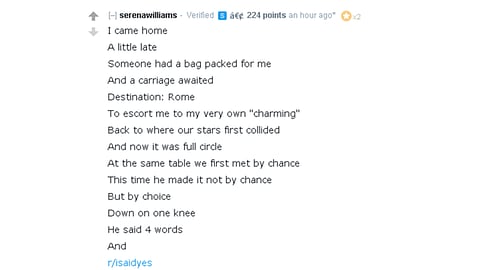 Serena Williams has used the social media platform Reddit to announce that she is engaged to its co-founder, Alexis Ohanian.