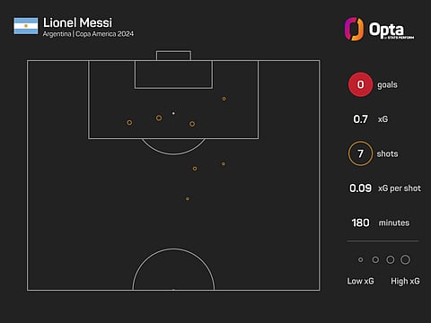 Messi failed to score for a second successive game at the tournament, only recording one shot worth 0.02 expected goals (xG), though he did create a game-high five chances for his team-mates.