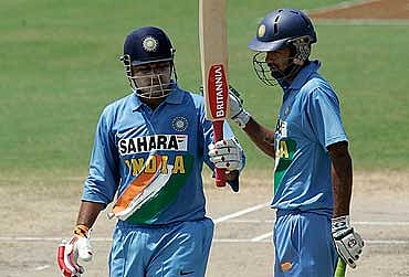 Earlier, Sehwag cracked a brilliant 97 from 82 balls and put on 112 runs withMohammad Kaif (61) at a run-a-ball rate before the wickets began to fall in aheap.