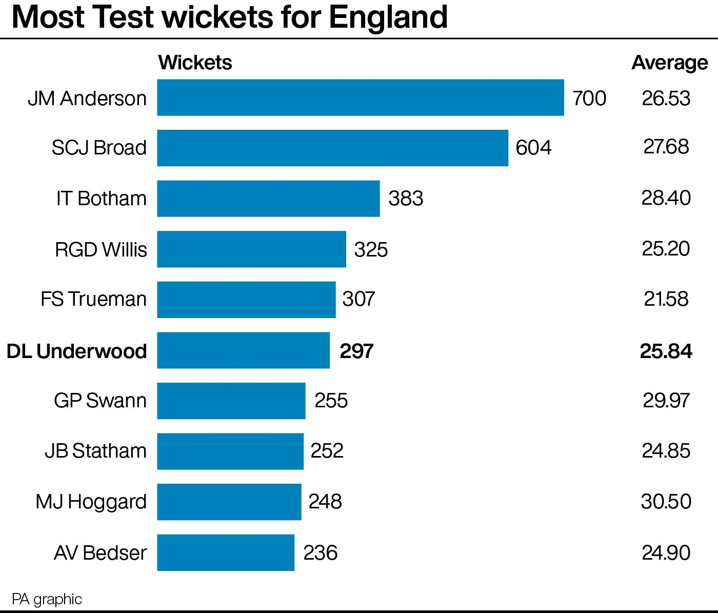 James Anderson and Stuart Broad have broken new frontiers for England in recent years, with 700 and 604 wickets respectively, but only three other bowlers have exceeded Underwood’s tally.