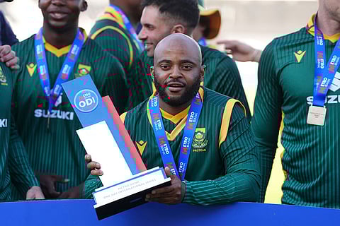 South Africa's Temba Bavuma with the trophy after winning Metro Bank One Day International series after the third ODI series cricket match between England and South Africa, at Utilita Bowl, Southampton, England.