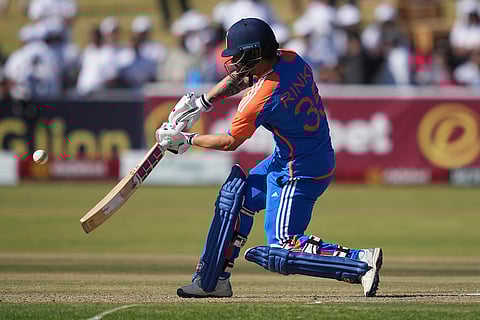 Indian batsman Rinku Singh in action during the T20 cricket match between Zimbabwe and India at the Harare Sports club, in Harare.