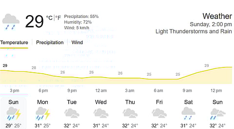 The weather of Kuala Lumpur is 72% humid and rain chances are high.