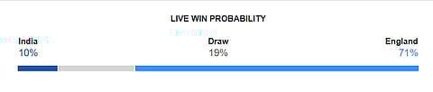 According to Google, England have a 71% chance of winning the fourth Test match, with India's win probability standing at just 10%. There's also a 19% chance of the match ending in a draw.