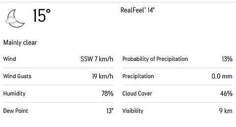 There could be 46% chance of cloud cover in Johannesburg for tonight's IND vs RSA match. Expect the temperatures to drop at 15° C.