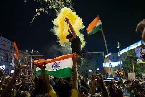 Cricket fans celebrate in Lucknow, capital of northern Indian state of Uttar Pradesh after India defeated South Africa in the ICC T20 World Cup final match in Barbados.