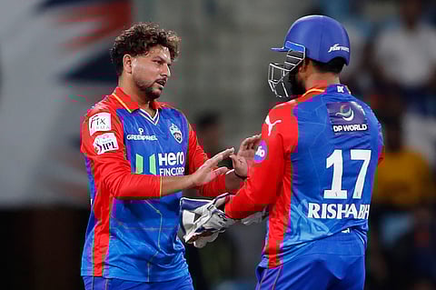Kuldeep Yadav struck thrice in his first two overs to leave LSG in a spot of bother as the hosts lost five of their wickets at the halfway mark. The left-arm wrist spinner got rid of Marcus Stoinis and Nicholas Pooran on consecutive deliveries in his first over and then returned to get a well set KL Rahul caught behind.