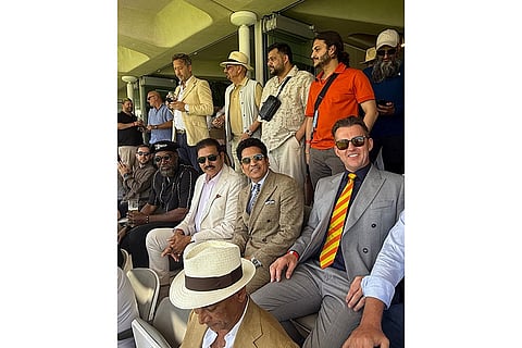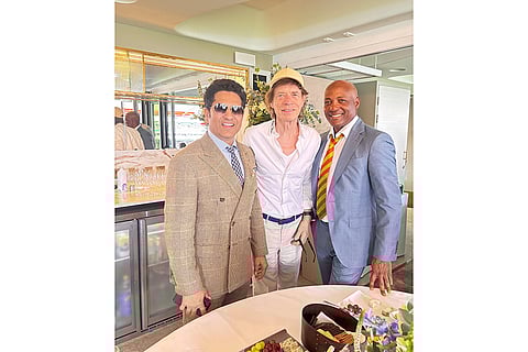 Sachin Tendulkar with Mick Jagger (C) and former West Indies captain Brian Lara at Lord's.