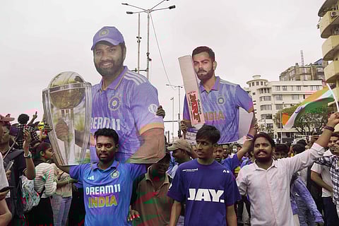 Fans gather ahead of the T20 World Cup-winning Indian cricket team’s open bus victory parade, in Mumbai.