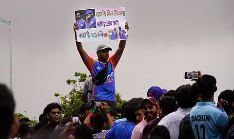 Fans gather ahead of the T20 World Cup-winning Indian cricket team's open bus victory parade, in Mumbai.
