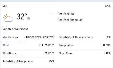 Matchday in Antigua is expected to be cloudy in the morning for the United States Vs South Africa clash. However, the cricketing fraternity is likely to get a full game come the 19th, with just 3% probability of thunderstorms.