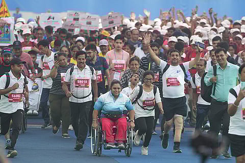 A specially-abled participant during Vedanta Delhi Half Marathon 2024, in New Delhi.