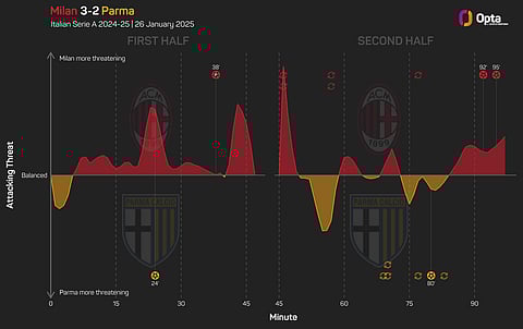 The dramatic win moves Milan to sixth in the standings with 34 points, while Parma are 17th after managing 20 points in the 2024-25 campaign.