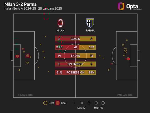 But goals in second-half stoppage time from Tijjani Reijnders and Samuel Chukwueze moved Milan up to sixth in the Serie A standings after 21 games of their season.