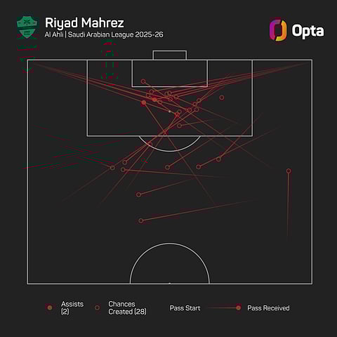 He has scored just one goal in nine Saudi Pro League games for Al-Ahli this season, having recorded 18 goal contributions last term (eight goals, 10 assists), though his 28 chances created are the second-most in the division in 2025-26.