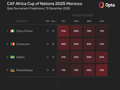 The holders are given a 7% chance of retaining their title. Topping Group F is not an easy assignment though, with Cameroon, Gabon and Mozambique also present, and they are assigned a 41% probability of doing so.